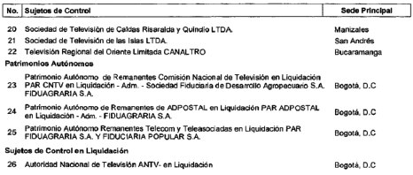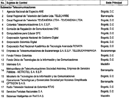 ARTÍCULO 4o. CONTRALORÍA PARA EL SECTOR DE TECNOLOGÍAS DE LA INFORMACIÓN Y LAS COMUNICACIONES. <Resolución derogada por el artículo 32 de la Resolución REJ-EJE-0088 de 2021> La Contraloría Delegada para el Sector de Tecnologías de la Información y las Comunicaciones será competente para ejercer la vigilancia y el control fiscal a los siguientes sujetos de control: