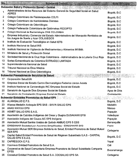 ARTÍCULO 13. CONTRALORÍA DELEGADA PARA EL SECTOR SALUD. <Resolución derogada por el artículo 33 de la Resolución REG-EJE-0097 de 2021> La Contraloría Delegada para el Sector Salud será competente para ejercer la vigilancia y el control fiscal a los siguientes sujetos de control: