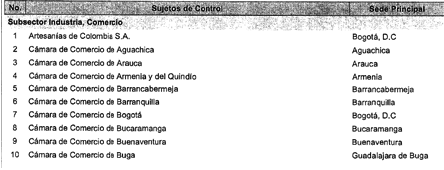ARTÍCULO 3o. CONTRALORÍA DELEGADA PARA EL SECTOR COMERCIO Y DESARROLLO REGIONAL. <Resolución derogada por el artículo 33 de la Resolución REG-EJE-0097 de 2021> La Contraloría Delegada para el Sector Comercio y Desarrollo Regional será competente para ejercer la vigilancia y el control fiscal a los siguientes sujetos de control: