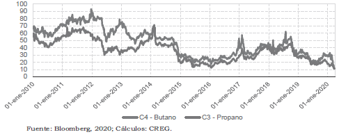 Fuente: Bloomberg, 2020; Cálculos: CREG.