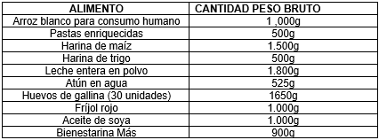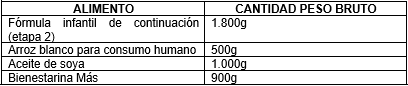 36. El factor es diferente en marzo, julio y noviembre, toda vez en estos meses, la operación de la modalidad contempla la rotación de los beneficiarios Tipo “niño”, quienes al ingresar a la modalidad reciben Alimento Listo Para el Consumo en lugar de la Ración Familiar Para Preparar (RFPP), dentro de la cual se encuentra la Bienestaria.