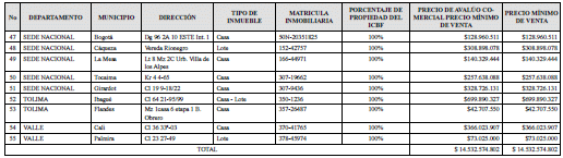 Que el Plan de Enajenación Onerosa vigente del ICBF está contenido en la Resolución número 2112 del 4 de marzo de 2020, en el cual se modificó el precio mínimo de venta de veintisiete (27) inmuebles y se incluyeron por primera vez veintiséis (26) inmuebles más, para un total de 53 bienes inmuebles disponibles para enajenación por no ser necesarios para el desarrollo de programas misionales de la Entidad, cuyos precios mínimos de venta corresponden a los avalúos comerciales vigentes.