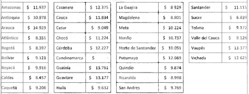 | CUNDINAMARCA | $35.011 | $241.346 | $276.357 | |||