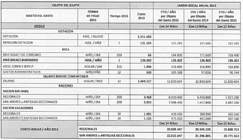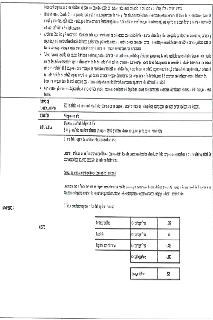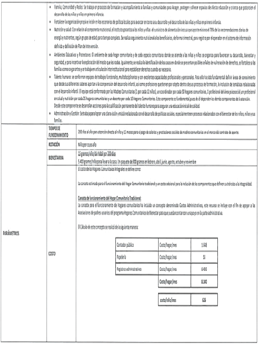 Gastos administrativos: este recurso se incluye con el fin de apoyar a las Asociaciones de padres usuarios del ´programa Hogares Comunitarios de Bienestar para que puedan contar con un apoyo en la parte administrativa.