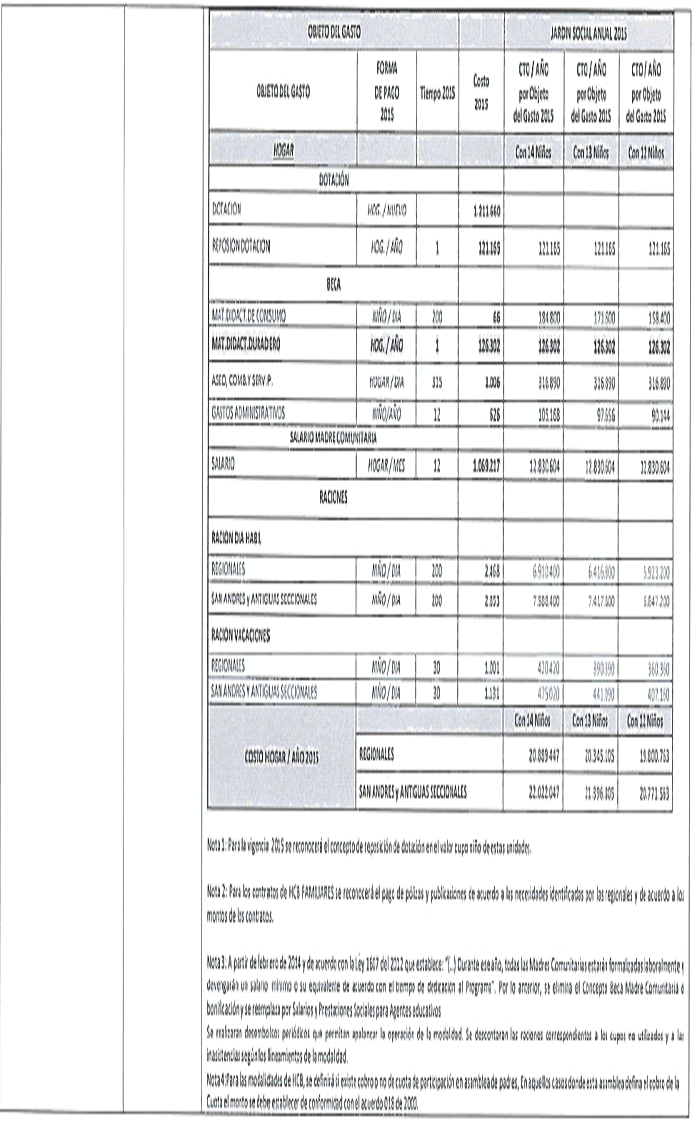 Nota 1: Para la vigencia 2015 se reconocerá el concepto de reposición de dotación en el valor cupo niño de estas unidades.