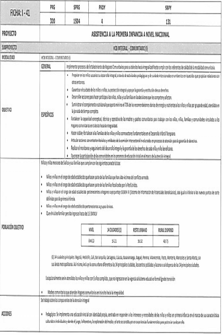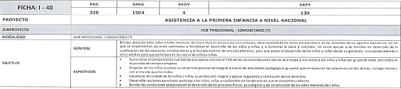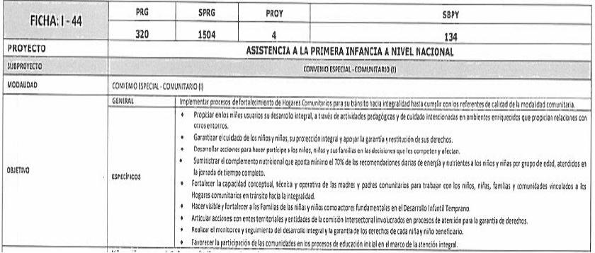 | PROYECTO | ASISTENCIA A LA PRIMERA INFANCIA A NIVEL NACIONAL | |||