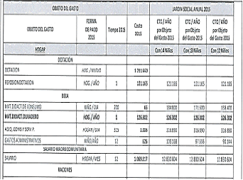 Nota 1: A partir del mes de febrero de 2014 y de acuerdo con la ley 160/ del 2012 que establece que: “(…) Durante ese año, todas las Madres Comunitarias estarán formalizadas laboralmente y devengarán un salario mínimo o su equivalente de acuerdo con el tiempo de dedicación al Programa”, se elimina de la canasta el Concepto Beca Madre Comunitaria o Bonificación y se reemplaza por Salario.