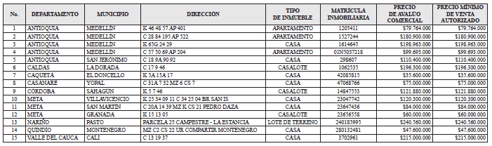 Que, el inciso 2 del artículo 2.5.2.4.2 del Decreto número 1068 de 2015(3) determinó que la entidad identificará los activos inmobiliarios que no sean requeridos para el ejercicio de sus funciones, excluyendo aquellos que: “1. Estén ubicados en zonas declaradas de alto riesgo no mitigable, identificadas en el Plan de Ordenamiento Territorial y en los instrumentos que lo desarrollen y complementen, o en aquellas que de acuerdo a estudios geotécnicos que en cualquier momento adopte la Administración Municipal, Distrital o el Departamento Archipiélago de San Andrés, Providencia y Santa Catalina; 2. No sean aptos para la construcción y los que estén ubicados en zonas de cantera que hayan sufrido grave deterioro físico; 3. Los contemplados en el inciso 1 del artículo 1o de la Ley 708 de 2001, vale decir, aquellos que tengan la naturaleza de bienes inmuebles fiscales con vocación para la construcción de vivienda de interés social urbana o rural, los cuales deberán ser reportados al Ministerio de Vivienda, Ciudad y Territorio, o al Ministerio de Agricultura y Desarrollo Rural, siempre que se cumpla con lo establecido en las disposiciones sobre estos inmuebles fiscales contenidas en el Decreto Único Reglamentario del Sector Vivienda, Ciudad y Territorio y el artículo 1o del Decreto número 724 de 2002 compilado en el Decreto Único Reglamentario del Sector de Agricultura y Desarrollo Rural. (…)”.