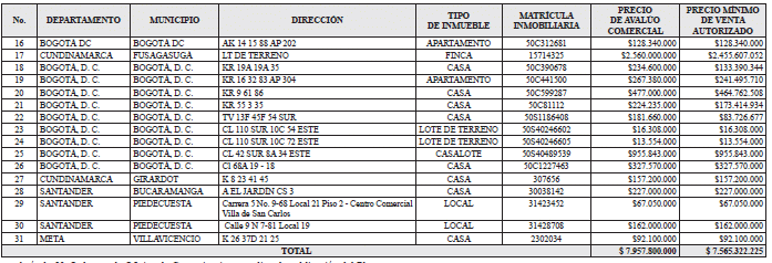 Que, el Comité de Gestión de Bienes de la Sede de la Dirección General, en sesión del 19 de junio de 2019 consideró viable la actualización en el Plan de Enajenación Onerosa de la entidad, el cual quedará conformado por treinta y un (31) bienes inmuebles que el ICBF no requiere para uso institucional de conformidad con el análisis de utilidad realizado a cada uno.