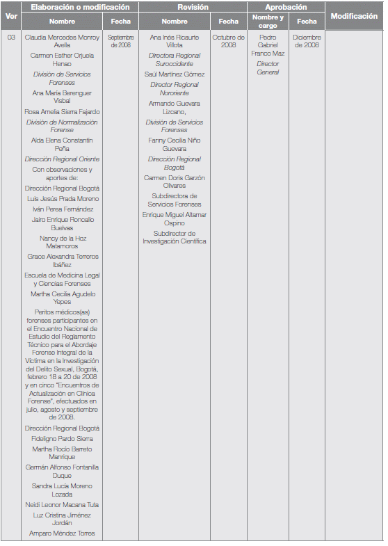 178. Consultar sobre version vigente en la pagina web del Instituto Nacional de Medicina Legal y Ciencias Forenses, www. medicinalegal.gov.co o escribiendo al Grupo Nacional de Clinica y Odontologia Forense: dsf@medicinalegal.gov.co