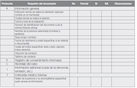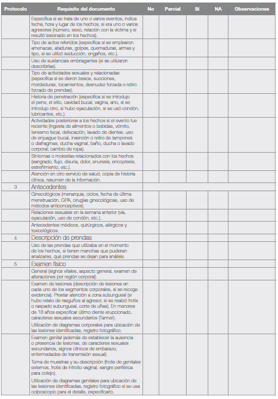 174. World Health Organization. Assessment and examination of adult victims of sexual violence. En Guidelines for medico-legal care of victims of sexual violence. Geneve 2003. pp. 30-56.