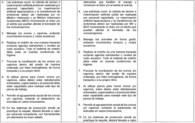 Las prácticas realizadas por razones de: eficiencia productiva, sanidad, bienestar animal y seguridad humana, como la castración, descorne, descole, identificación y podología deben realizarse de tal manera que se cause el mínimo estrés y dolor al animal, y a la edad mas temprana posible, teniendo en cuenta que.