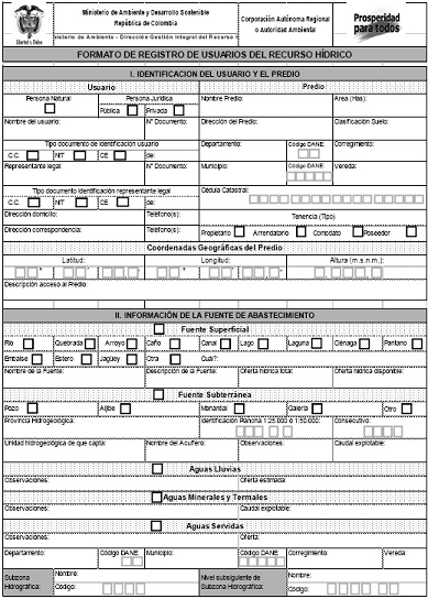 FORMATO PARA EL REGISTRO DE USUARIOS DEL RECURSO HÍDRICO.