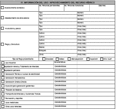 IV. Información sobre el uso y aprovechamiento del recurso hídrico,