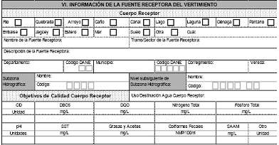El presente módulo relaciona información sobre el tipo y nombre del cuerpo de receptor, su localización georreferenciada (coordenadas geográficas: latitud, longitud y altitud del sitio donde se efectúa el vertimiento).