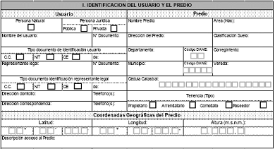 Es necesario georreferenciar a través del registro de la latitud y la longitud correspondiente el predio asociado al usuario del recurso hídrico y/o al aprovechamiento del mismo. Dichas coordenadas se registrarán en términos de grados, minutos y segundos, según el sistema MAGNA-SIRGAS, de conformidad con lo establecido en la Resolución del Instituto Geográfico Agustín Codazzi número 068 de 2005.