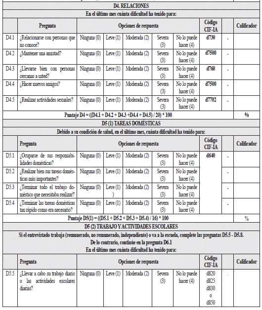 Instrumento para la valoración de limitaciones en las actividades y restricciones en la participación para mayores de 18 años de edad (WHODAS 2.0)