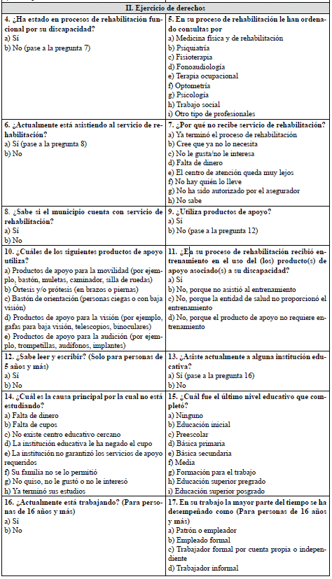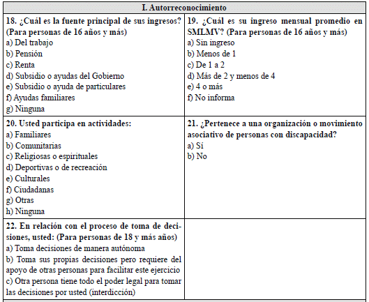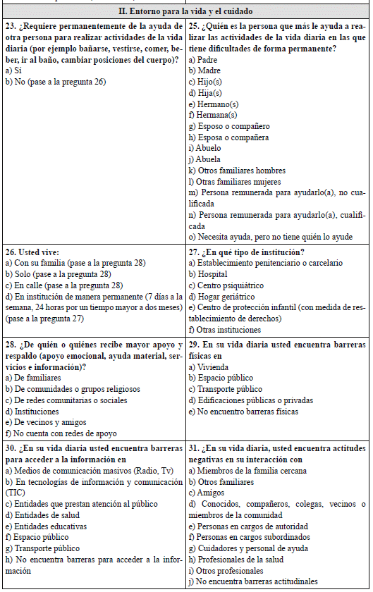 El último paso de la entrevista con el solicitante es la solicitud de información acerca de los datos personales y de residencia del solicitante, autorreconocimiento (sexo, identidad de género, orientación sexual, pertenencia étnica) y su entorno para la vida y el cuidado. En este último aspecto indaga acerca del acceso a la garantía del derecho a la rehabilitación, a la educación, al trabajo y a la participación en la vida política y pública, necesidades de apoyo permanente de una tercera persona y presencia de barreras físicas, comunicativas y actitudinales.