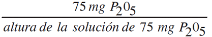 - Solución de 75,0 mg P205/500 ml. Tome con una pipeta 75,0 ml de la solución patrón de P205 en un balón de 500 ml y diluya hasta un volumen de 500 ml con agua.