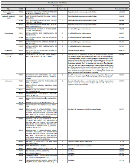| 4 | Atención ámbito UCI pediátrico | $2.243.968 |