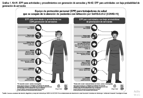 Como se advierte, la composición del equipo de protección personal está relacionado con los procedimientos o actividades a los que se exponga el talento humano en salud, estudiantes y docentes en prácticas formativas. A continuación, se listan los procedimientos considerados de alta y baja probabilidad de generación de aerosoles