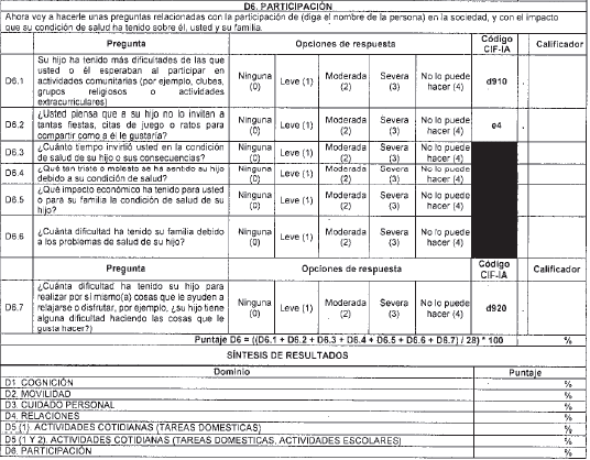 Instrumento para la valoración de limitaciones en las actividades y restricciones en la participación para personas entre 6 y 17 años de edad