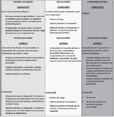 Tabla. Evaluación de personas candidatas a la vacunación frente a COVID-19 de Moderna