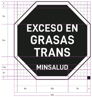 32.3.3. Grasas trans. La letra “x” corresponde a la unidad de proporción sobre la que se construye el ícono del sello.