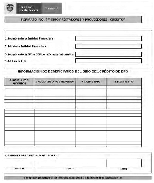 INTRUCCIONES PARA EL DILIGENCIAMIENTO DEL FORMATO No. 4 “GIRO PRESTADORES Y PROVEEDORES – CRÉDITO”