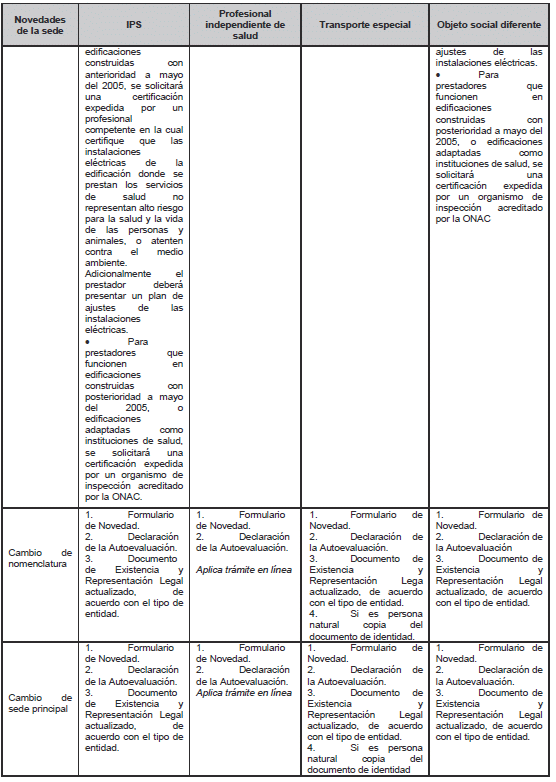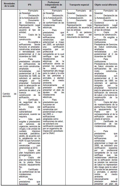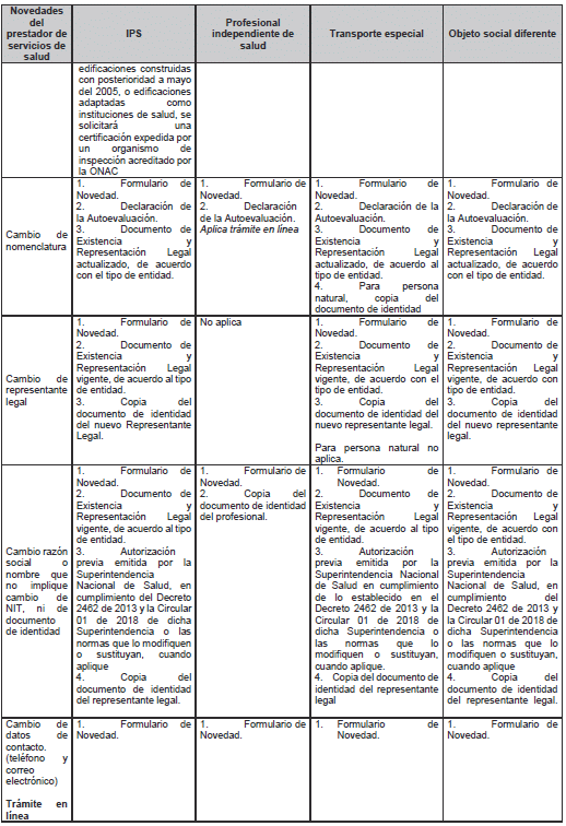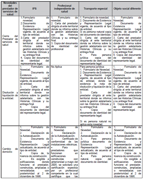 ARTÍCULO 12. NOVEDADES. <Artículo modificado por el artículo 5 de la Resolución 544 de 2023. El nuevo texto es el siguiente:> Los prestadores de servicios de salud están en la obligación de reportar las novedades que aquí se enuncian ante la respectiva secretaría de salud departamental o distrital, o la entidad que tenga a cargo dichas competencias, diligenciando el formulario de reporte de novedades disponible en el aplicativo del REPS publicado en la página web de cada entidad territorial y, cuando sea el caso para su verificación, anexará los soportes definidos en el Manual de Inscripción de Prestadores y Habilitación de Servicios de Salud. Se consideran novedades las siguientes, las cuales se encuentran definidas en el Manual anexo a la presente resolución: