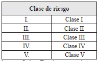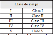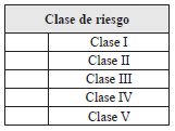 Clase de riesgo. Identifique y marque con una X la clase de riesgo del afiliado al SGRL de acuerdo con las siguientes opciones, que le aplique al nuevo centro de trabajo: