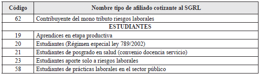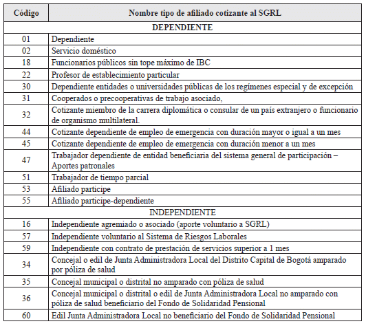 4. Tipo de afiliado cotizante al SGRL: Dato obligatorio