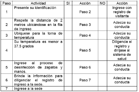 - Todo aquel que se encuentre dentro de las instalaciones, debe informar inmediatamente sobre cualquier eventualidad de salud que se dé dentro de la Entidad o de personas que presenten síntomas de mal estado de salud.