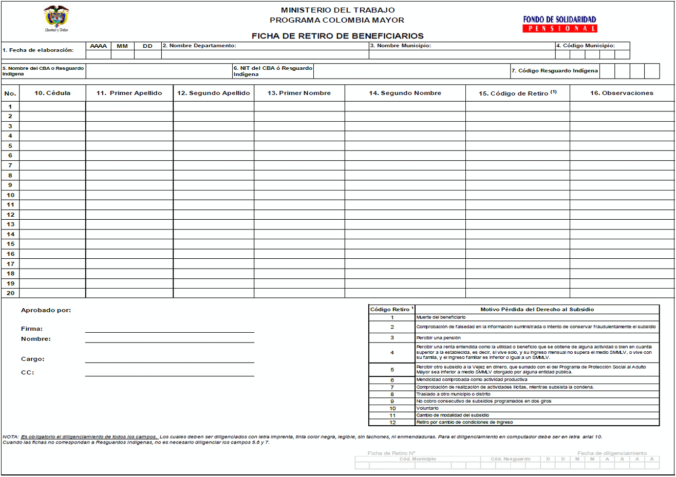 | 19 | Notificación de Ingreso de Beneficiarios al Programa de Protección Social al Adulto Mayor hoy Colombia Mayor | Administrador BEP | Oficio que puede ser por correo electrónico | ||