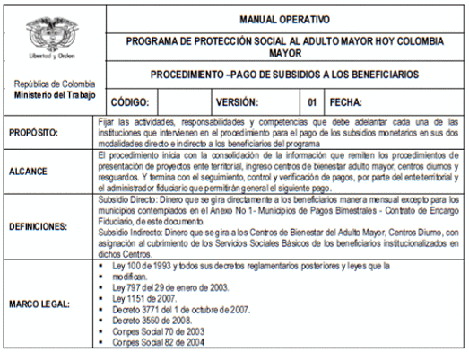 PROGRAMA DE PROTECCIÓN SOCIAL AL ADULTO MAYOR - HOY COLOMBIA MAYOR