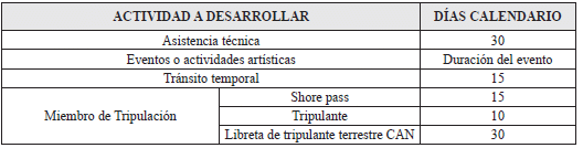 - Visitante: “(...) Toda persona que desembarque y entre en el territorio del Estado colombiano y permanezca en él legalmente con arreglo a lo prescrito por su legislación nacional, para fines legítimos en calidad de no inmigrante, tales como de turismo, diversión, deportes, salud, motivos familiares, peregrinaciones religiosas o negocios, y que no emprenda ninguna ocupación lucrativa durante su estancia en el territorio nacional”(14).