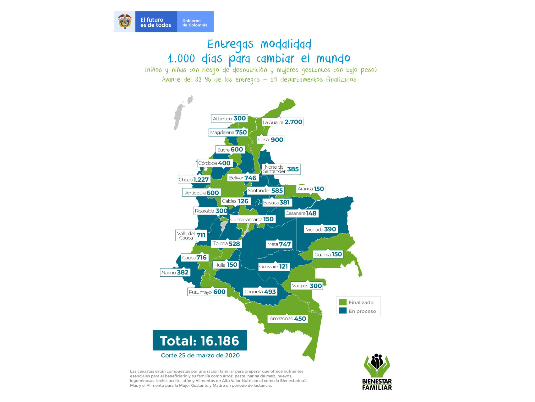Así mismo, el ICBF mediante la modalidad para el Fortalecimiento de capacidades de niñas, niños y adolescentes con discapacidad y sus familias, atiende 4.802 beneficiarios en 56 municipios de 23 departamentos, quienes continúan siendo acompañados de forma virtual y con seguimiento telefónico individual por parte de profesionales, permitiendo que la estadía en sus hogares esté guiada por actividades diseñadas de acuerdo al tipo de discapacidad y necesidades especiales de cada uno.
