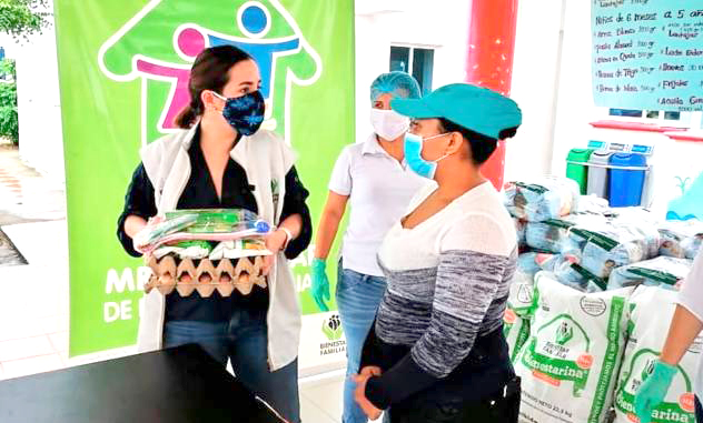 Lina Arbeláez, Directora General del ICBF, presidió la entrega de las canastas e indicó que siguen garantizando la alimentación a los más de 46.000 niños.