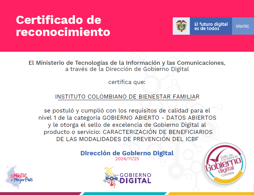 ¿Qué es?: Este dataset es un conjunto de datos que contiene información sobre la población atendida en modalidades de prevención del ICBF. Incluye detalles sobre la caracterización de los beneficiarios, las modalidades de atención ofrecidas y las unidades de servicio responsables de la prestación.