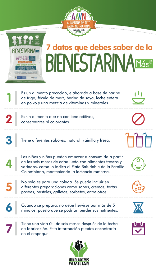Sabías que el ICBF produce desde el año 1976 Bienestarina®, un complemento alimenticio que ha contribuido a prevenir la desnutrición en millones de colombianos perteneciente a la población vulnerable. Este producto colombiano es denominado Alimento de Alto Valor Nutricional – AAVN, se encuentra en diferentes presentaciones y sabores. Se entrega gratis a los beneficiarios de los servicios del Instituto Colombiano de Bienestar Familiar, ICBF, en todo el país. Te invitamos a conocer este importante alimento.