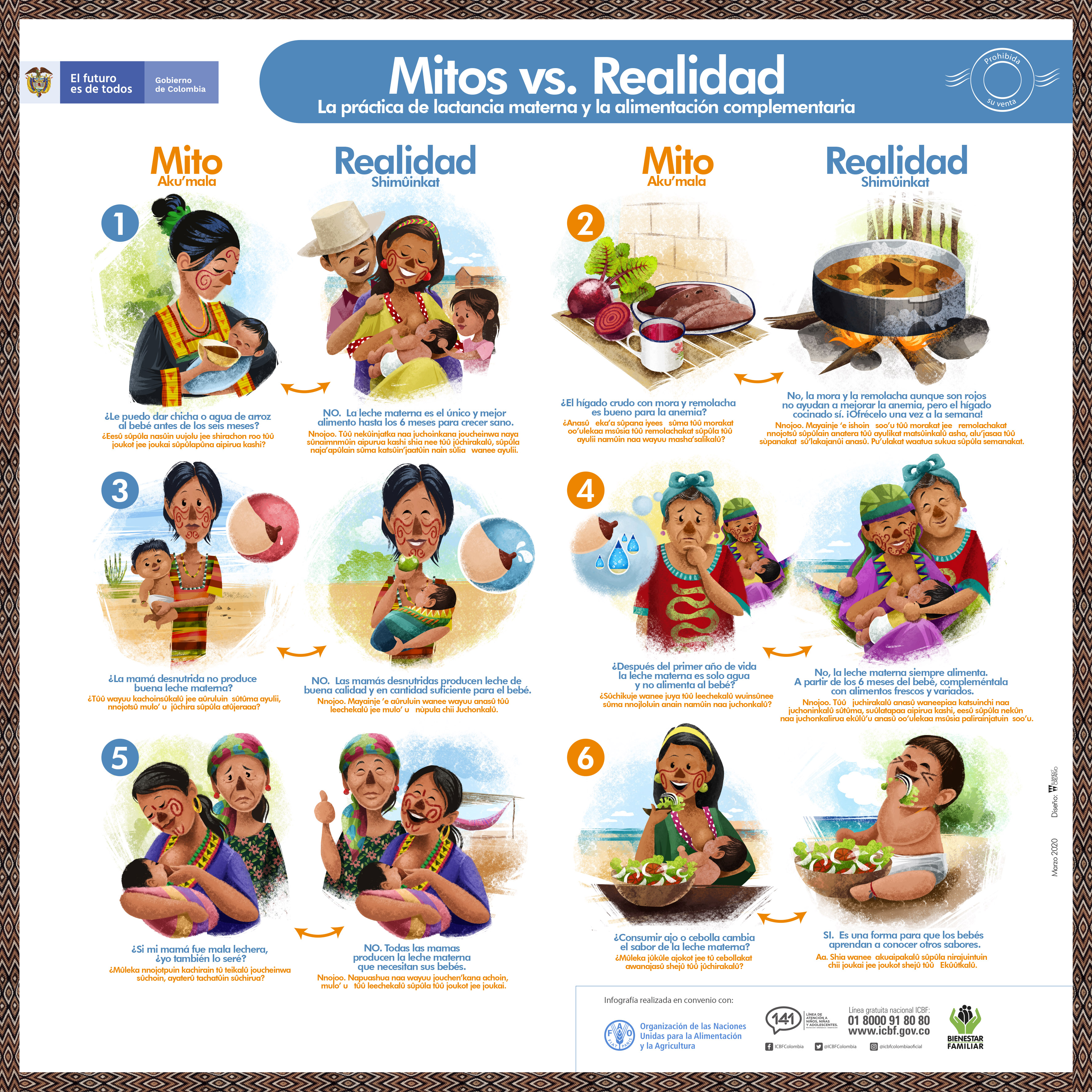 ¿Si mi mamá fue mala lechera, yo también lo seré? Conoce la realidad de este y otros cinco mitos comunes en la comunidad wayúu, sobre la lactancia materna y la alimentación complementaria.