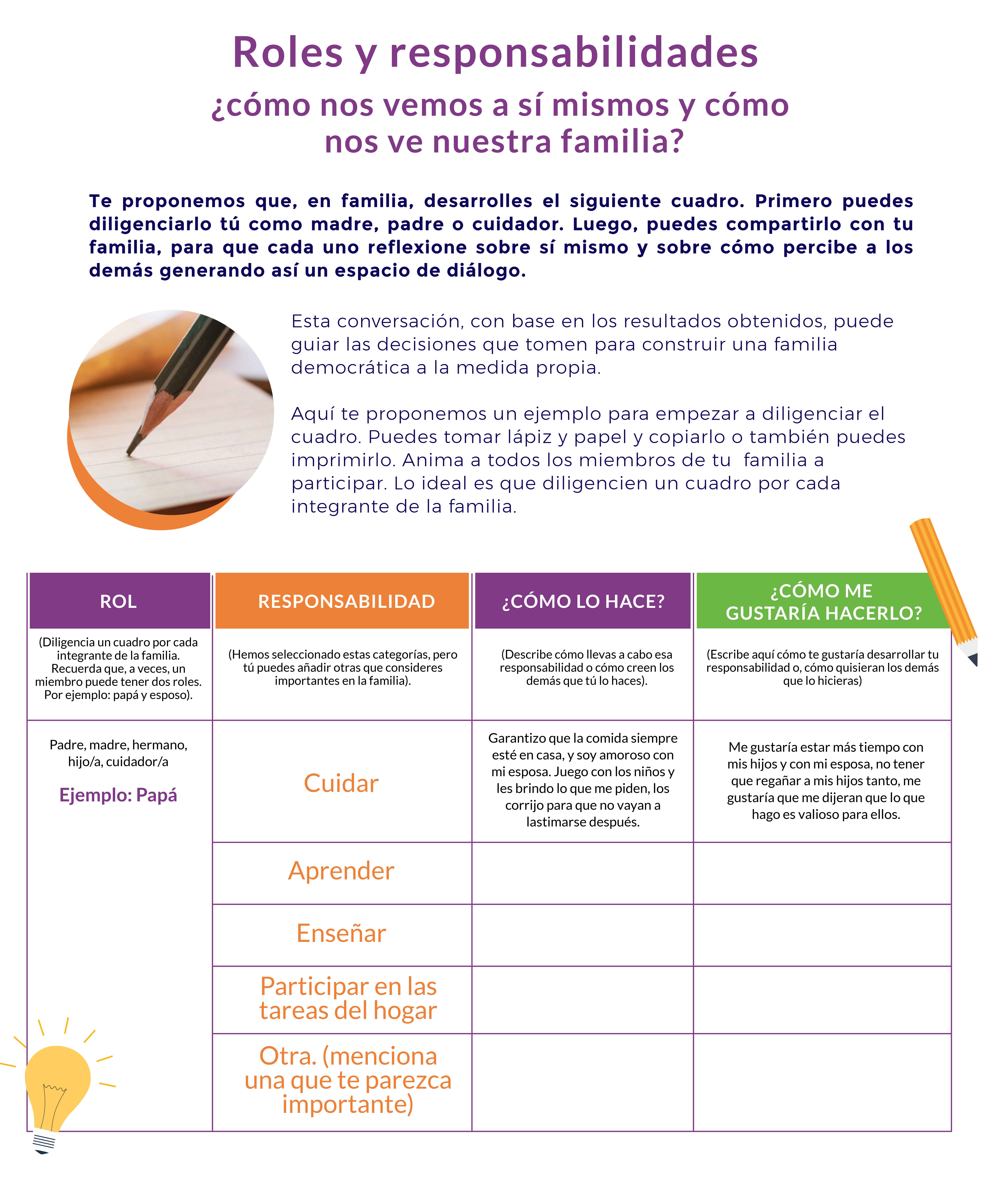 Te invitamos a realizar una dinámica sencilla con tus familiares, con el fin de conversar y conocerse más unos a otros.