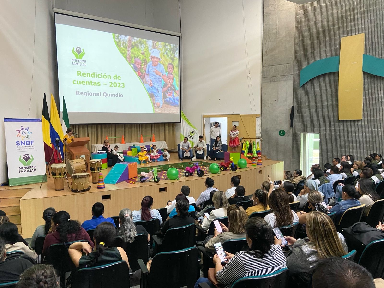 Con una muestra cultural del grupo ‘Los llaneritos’, integrado por niños y niñas atendidos  en Primera Infancia, se dio inicio a la jornada de Rendición Pública de Cuentas 2023 del Instituto Colombiano de Bienestar Familiar (ICBF) en Quindío, al que asistieron más de 300 personas entre usuarios, delegados de entidades, operadores, colaboradores y comunidad.