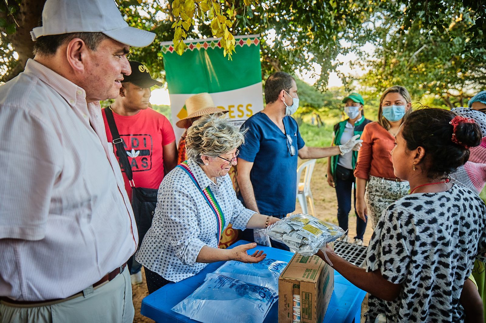 Durante su recorrido, la funcionaria visitó la Unidad Comunitaria de Atención (UCA) El Cardón en el resguardo Las Delicias, donde entregó Raciones Para Preparar (RPP), Bienestarina líquida, agua potable y kits de salud oral; y el Centro de Recuperación Nutriciónal (CRN) Tejiendo Sueños en Riohacha.