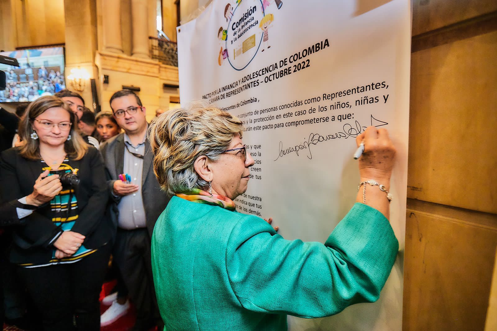 Con el compromiso de seguir abriendo espacios que le permitan a las niñas, niños y adolescentes decir lo que piensan y ser escuchados; de ser protegidos por sus familias, la sociedad y el Estado, y crecer felices, sanos y seguros, la Directora General del Instituto Colombiano de Bienestar Familiar (ICBF), Concepción Baracaldo Aldana, firmó el Pacto por la Infancia y la Adolescencia de Colombia.