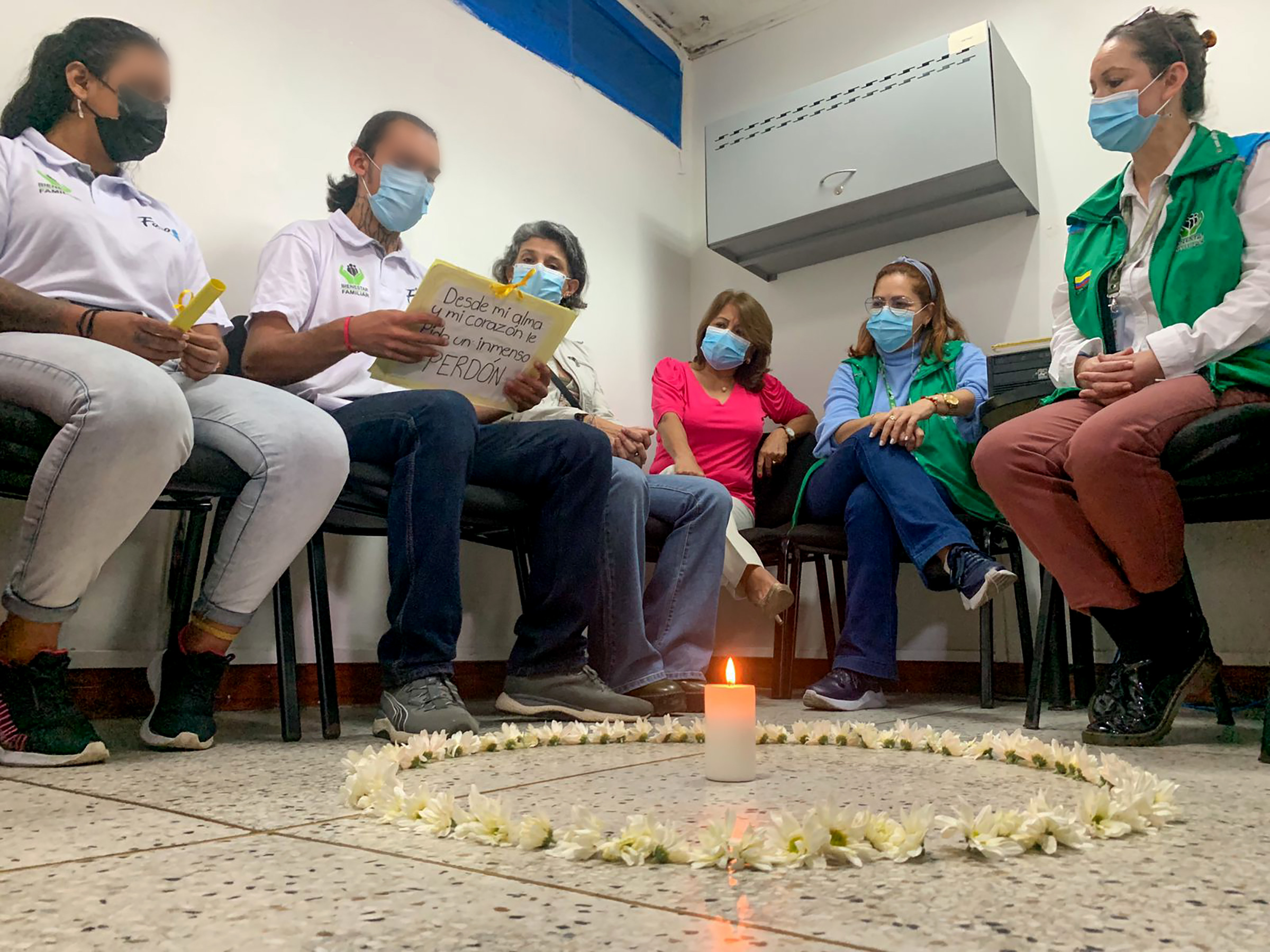 El encuentro de justicia restaurativa realizado en la sede del ICBF en Quindío fue la oportunidad para que los adolescentes manifestaran a su víctima, a través de un círculo de la palabra, el reconocimiento de su error, su voluntad de cambio, sus intenciones de pedir y recibir perdón y el compromiso público de ser mejores personas, de aplicar los valores y proyectos trabajados en la medida pedagógica, esperando contribuir positivamente a la sociedad y a sus familias.