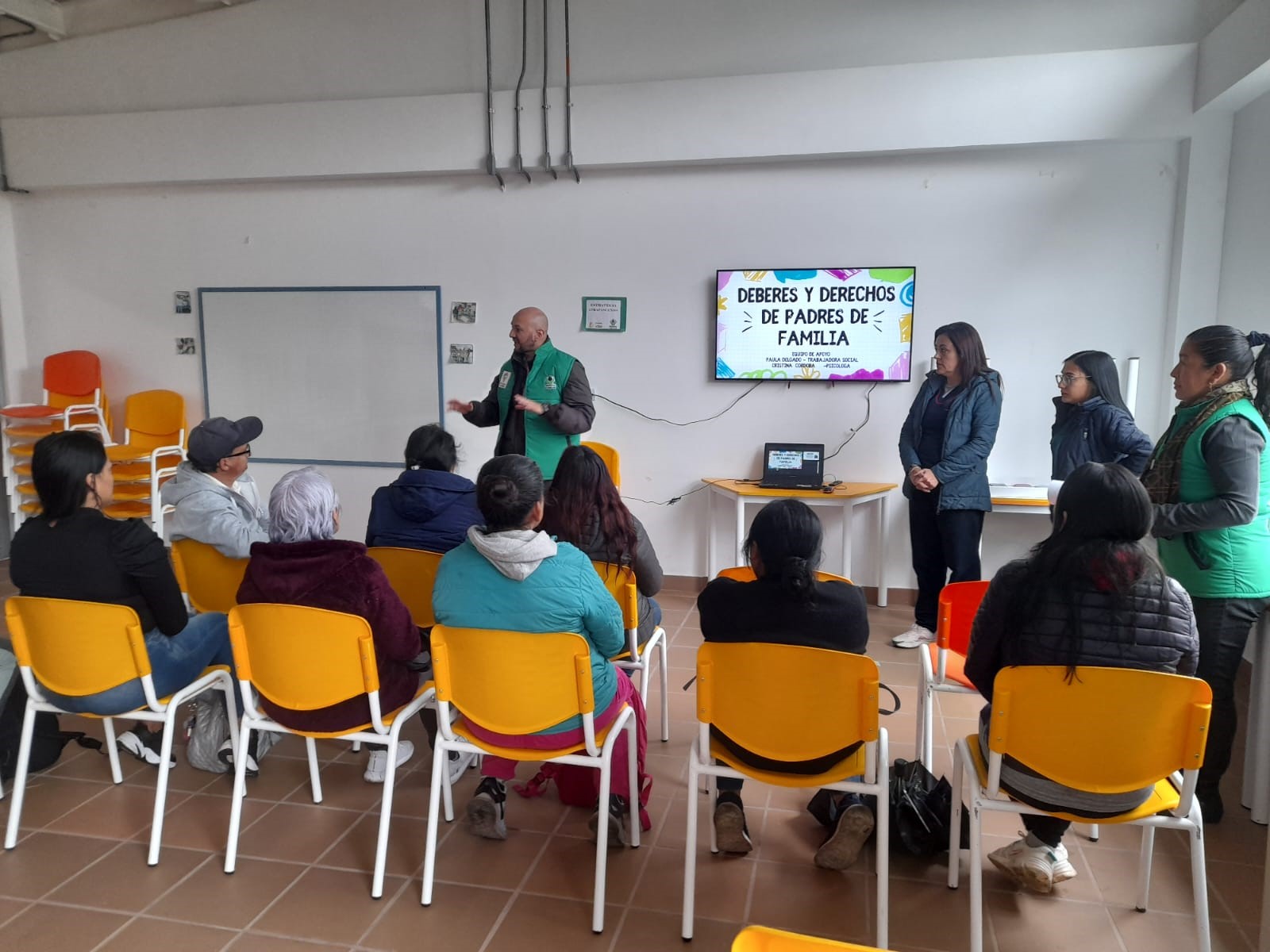 Este espacio tuvo como propósito la promoción del reconocimiento del grupo familiar como primer entorno protector para los adolescentes vinculados al sistema, enfatizando en la corresponsabilidad de los padres y madres en el apoyo a la construcción y respaldo a los proyectos de vida lícitos y funcionales de los adolescentes que actualmente se encuentran en el CAE Santo Ángel.