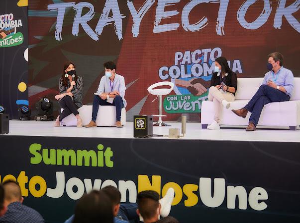 En el panel se destacó la labor realizada por la Directora General del Instituto Colombiano de Bienestar Familiar (ICBF), Lina Arbeláez, y por el Consejero para la Juventud, Juan Sebastián Arango, en la construcción del Pacto Colombia con las Juventudes.