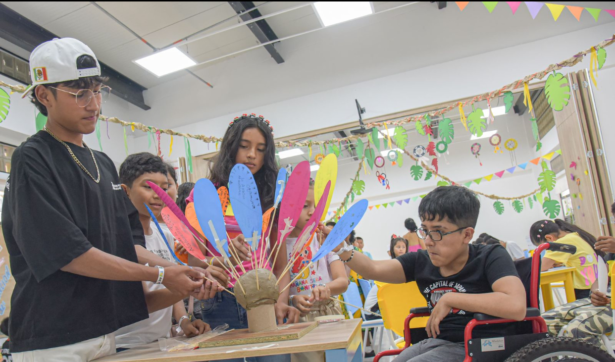 Pero la creatividad de los asistentes fue más allá, porque a través de las manualidadeselaboraron la Flor de Inírida, en cuyos pétalos plasmaron cientos de mensajes para el cuidado del planeta, de los ecosistemas y la fauna y la flora, en una actividad denominada Pétalos de paz y naturaleza: una flor para la niñez y la adolescencia.