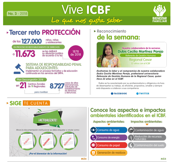 Boletín Vive ICBF No 10 Documento vive_icbf_n10.pdf Imagen de listado Fecha Viernes, Abril 6, 2018 - 06:55 Categoría del archivo Publicaciones Vive ICBF Prioridad 10 Fecha fijación Viernes, Abril 6, 2018 - 07:00 Fecha desfijación Viernes, Abril 6, 2018 - 07:00 Lee más sobre Boletín Vive ICBF No 10